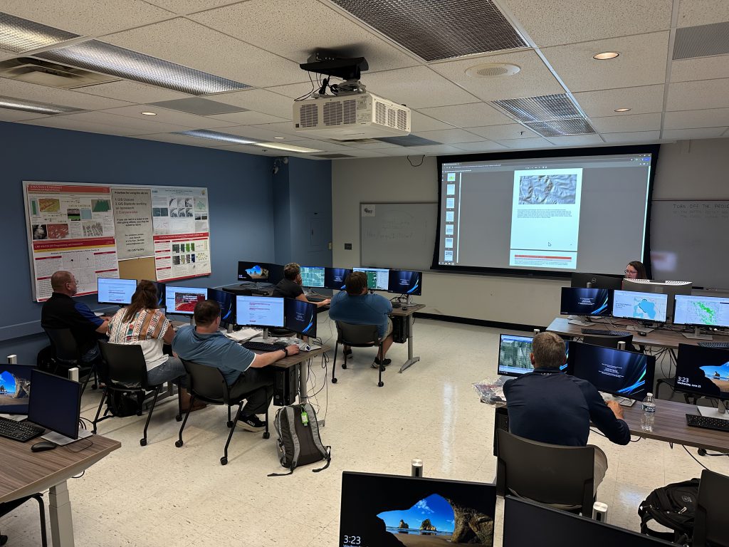 Dr. Brian Gelder (IowaView PI) and Amy Logan co-presented an afternoon workshop about digital agriculture. First, Brian led an introduction to aerial imagery, GIS, and remote sensing agricultural apps for the classroom. Then Amy highlighted many features of the Iowa Geographic Map Server, ISU’s aerial imagery repository, and app.